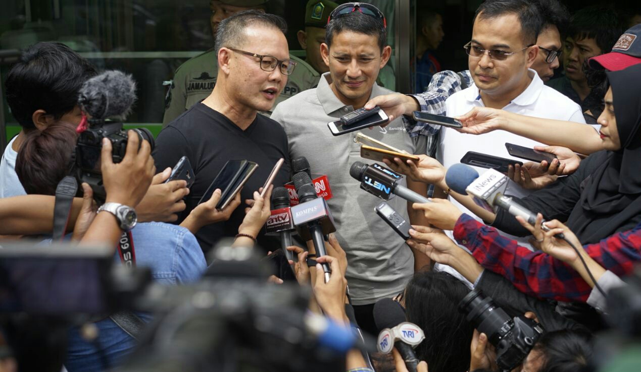 Menurut Sandiaga, dirinya sangat mendukung penerapan OK OCE diterapkan Saifudin Aswari dan Irwansyah yang juga calon gubernur dan wakil gubernur Sumatera Selatan itu.