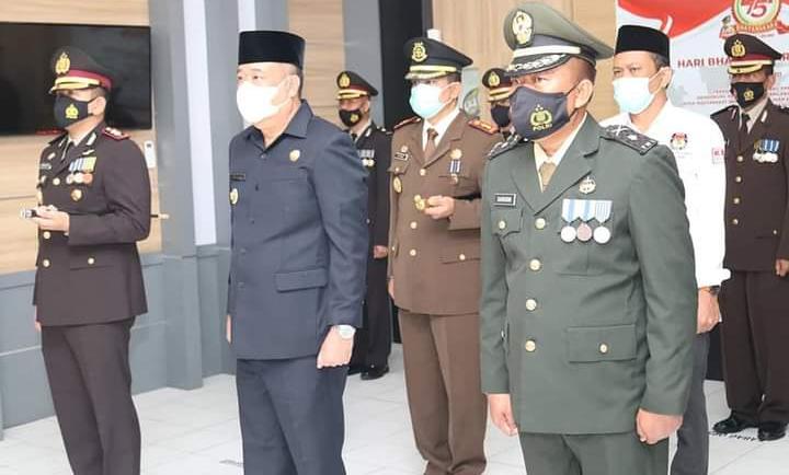 LAHAT, Beritakite.com – Bupati Lahat,Cik Ujang SH menghadiri Upacara Peringatan Hari Ulang Tahun ( HUT ) Bhayangkara Ke-75 1 Juli 2021 bertempat di Rudal Polres Lahat melalui zoom meeting sekaligus mendengarkan Pidato Presiden Republik Indonesia Ir Joko Widodo, Kamis ( 30/7/2021 ).