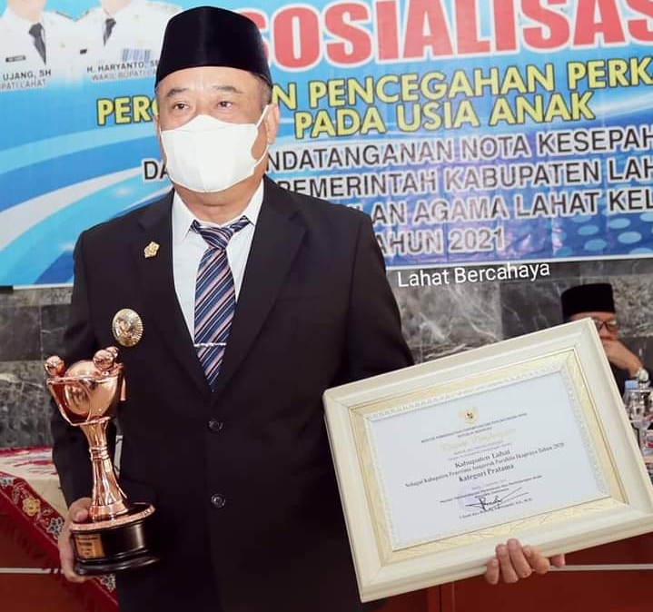 Adapun Penghargaan tersebut diserahkan langsung oleh Kepala Dinas Pemberdayaan Perempuan dan Perlindungan Anak ( DPPPA ) Kabupaten Lahat Hj Nurlela,S Ag kepada Bupati Lahat,Cik Ujang SH, Senin ( 27/9/2021 ), bertempat di gedung pertemuan pemerintah kabupaten lahat.