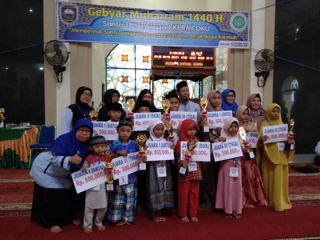 Sementara itu Ketua DPD BKPRMI Kabupaten OKU dalam laporannya saat pembukaan Gebyar Muharram 1440 H menjelaskan bahwa setiap juara 1 akan mendapatkan hadiah berupa trofi, sertifikat dan uang pembinaan sebesar Ro. 500.000, juara 2 mendapat hadiah trofi, sertifikat, dan uang pembinaan Rp. 400.000 sedangkan juara 3 akan mendapatkan trofi, sertifikat dan uang pembinaan Rp. 300.000