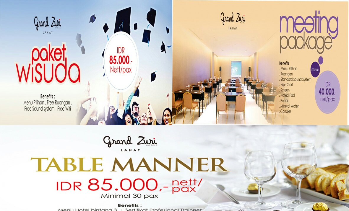 Untuk informasi lebih lanjut bisa menghubungi kontak Hotel Grand Zuri Lahat 0822 8226 4987 (Boni) dan 0811732403 (Retni).
