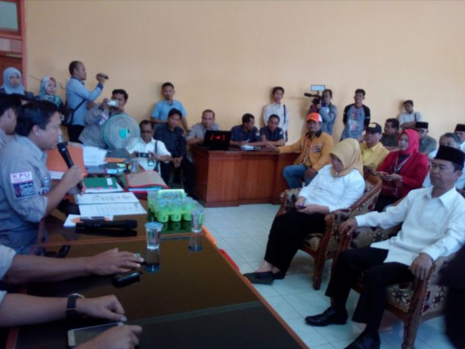 “Berkas berkas.nya lengkap dan siap melaju ketahapan selanjutnya.” terangnya. Acara sempat diskors saat pendaftaran di KPU karena Sekretaris Golkar, Mirwan telat hadir di KPU.