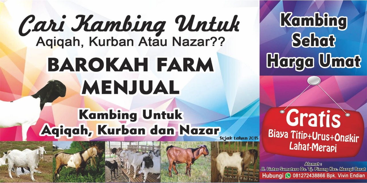 Tak hanya untuk kurban, Barokah Farm juga melayani kebutuhan kambing untuk aqiqah dan nazar. Berdiri sejak lebih dari lima tahun lalu, Barokah Farm telah berpengalaman dan dipercaya oleh banyak pelanggan dalam bidang jual beli kambing di wilayah Lahat dan sekitarnya.(jn)