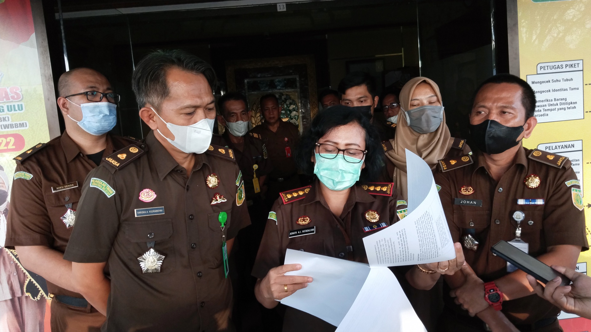 “Pada hari ini Penyidikan pada Seksi Tindak Pidana Khusus menetapkan dua tersangka dengan inisial F yang saat itu (2015) menjabat selaku Kadispenda OKU dan SA selaku Bendahara Dispenda OKU,” Ucap Kepala Kejaksaan Negeri OKU Asnath Anytha Idatua Hutagalung, SH., MH., didampingi Kasi Pidsus Johan Ciptadi, SH., MH., dan Kasi Intel Variska Ardina Kodriyansah, SH., MH., dan Kasi Pidum Armen Ramdhani, SH., MH., saat menyampaikan konferensi pers di Kejaksaan Negeri OKU, Senin (23/5/2022).