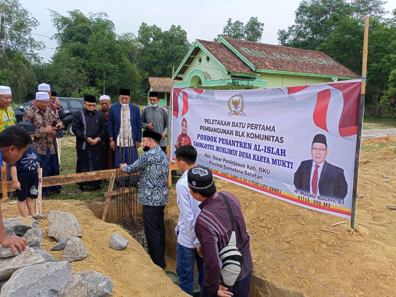Peletakan batu pertama pembangun Balai Latihan Komunitas (BLK) Pondok pesantren Al-Isalah Nahdatul Muslimin itu dihadiri oleh unsur pimpinan Pondok Pesantren Al-Isalah Nahdatul Muslimin, Kepala Desa Karya Mukti, Ketua Forum Pondok Pesanteran Kabupaten OKU dan seluruh masyarakat dilingkungan pondok pesantren.