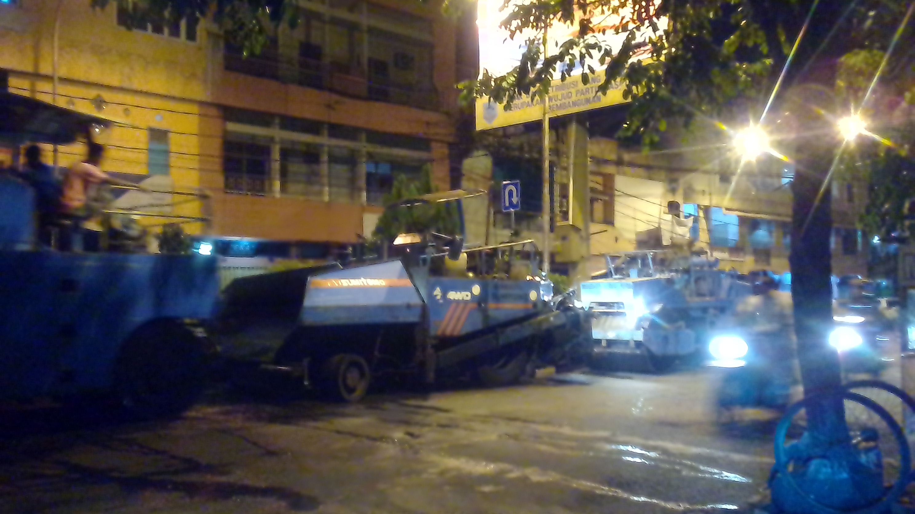 Pengerjaan itu sengaja dilakukan ketika malam hari sengaja karena agar tidak mengganggu aktivitas warga yang sering melewati jala itu untuk menuju sekolah ataupun kantor.