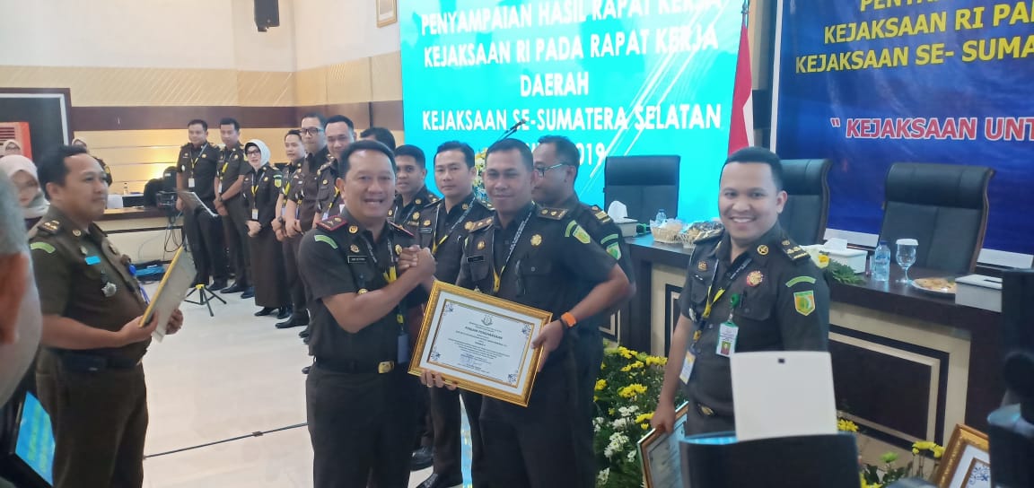 Piagam penghargaan tersebut diserahkan saat kegiatan Rakerda Kejaksaan Se Sumsel, Senin (16/12/2019) di Kejati Sumsel dan diterima langsung Kasi Intel Kejari OKU Abu Nawas, SH.