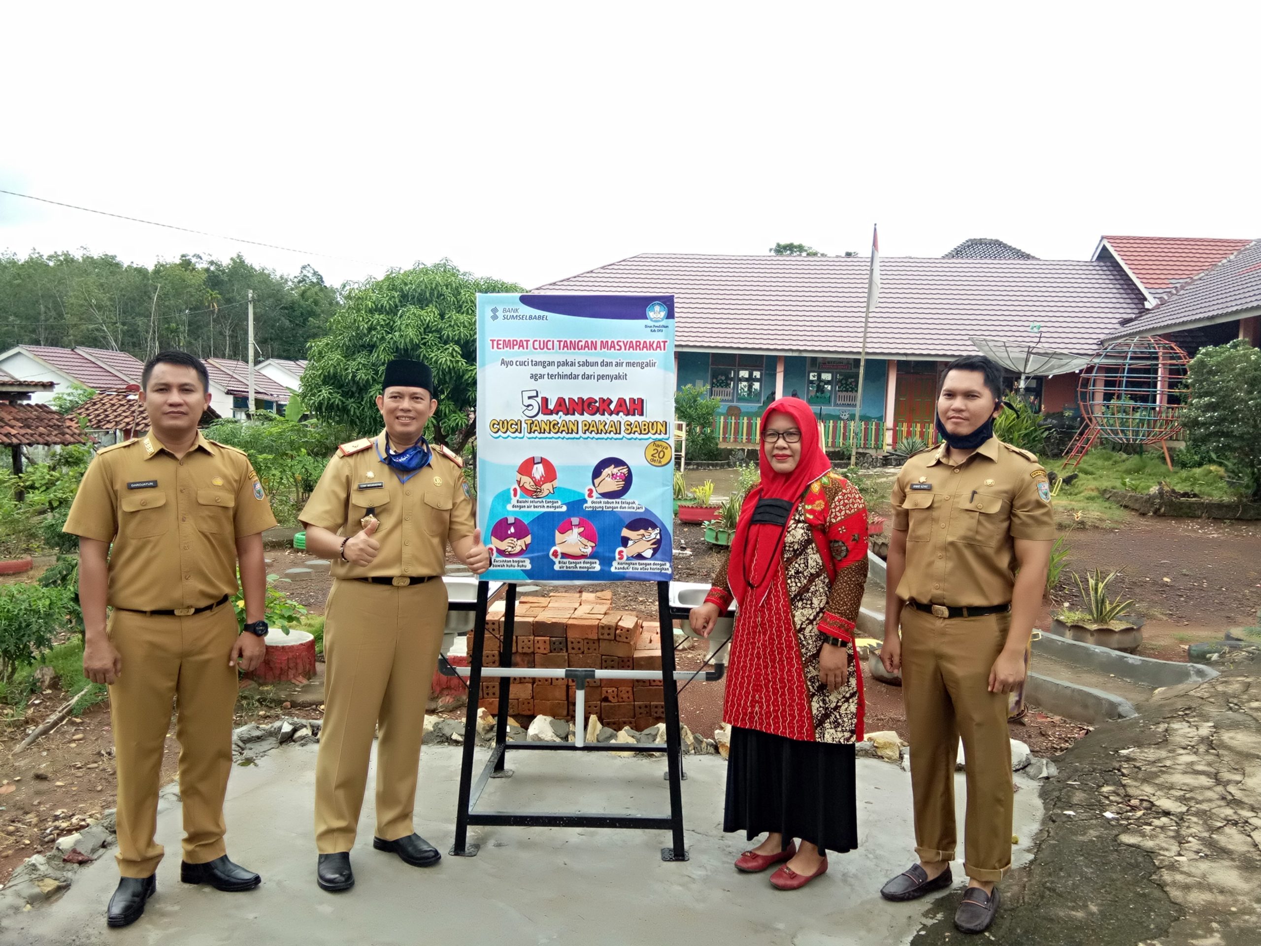 Teddy Meilwansyah menjelaskan bahwa bantuan hand sanitizer station itu merupakan kerjasama antara Diknas dan Bank Sumsel Babel Cabang Baturaja.