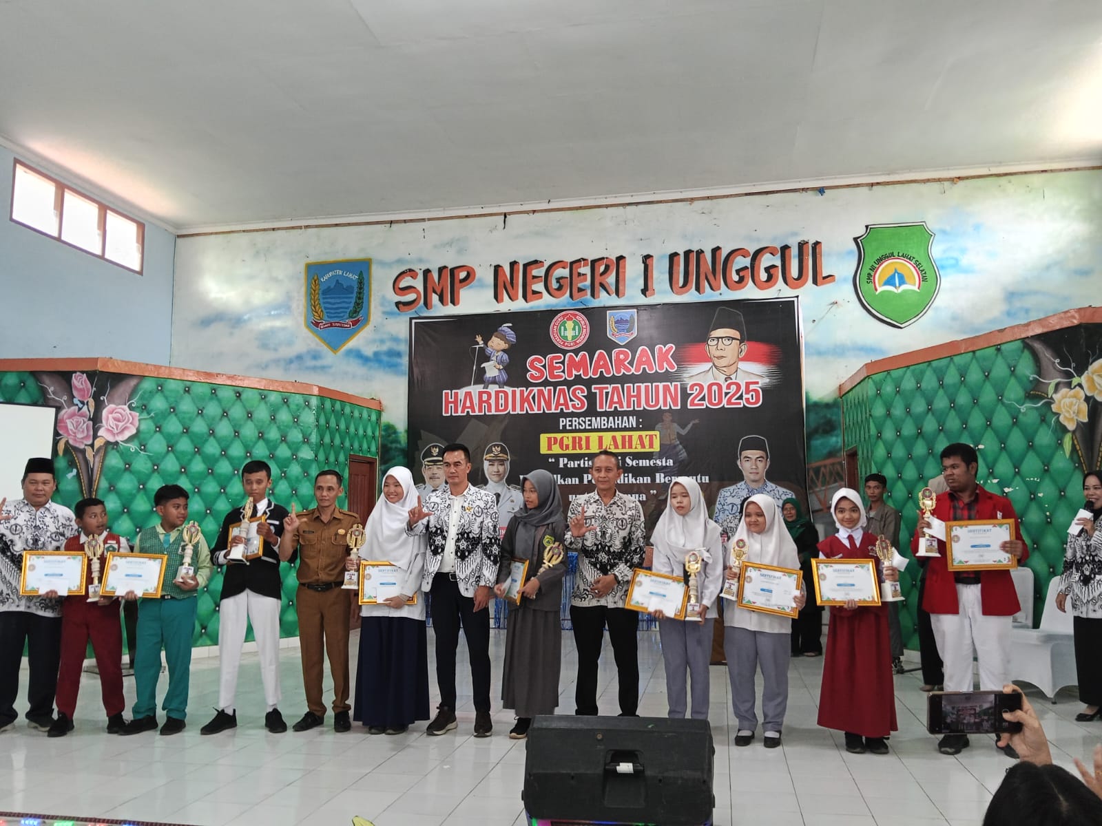 Peringatan Puncak Hardiknas 2025 ini ditutup dengan penyerahan piala, piagam, dan penghargaan kepada para pemenang lomba serta pihak-pihak yang berjasa dalam memajukan pendidikan.