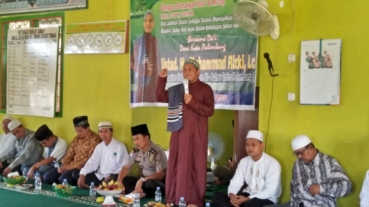 Muba, beritakite.com – Pengurus Masjid Al-Ikhlas SMAN 1 Babat Toman melaksanakan momentum bersejarah yaitu Isra’ Mi’raj Nabi Besar Muhammad SAW 1440 H serta menggelar zikir, doa bersama yang dilanjutkan pengajian Hikmah Isra’ Mi’raj , Jum’at (12/04/2019).