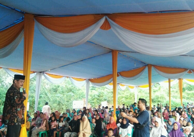 CILAN selaku tokoh masyarakat Muara siban mengucapkan selamat datang kepada Cabup Lahat H.Bursah Zarnubi SE di Desa Muara Siban.