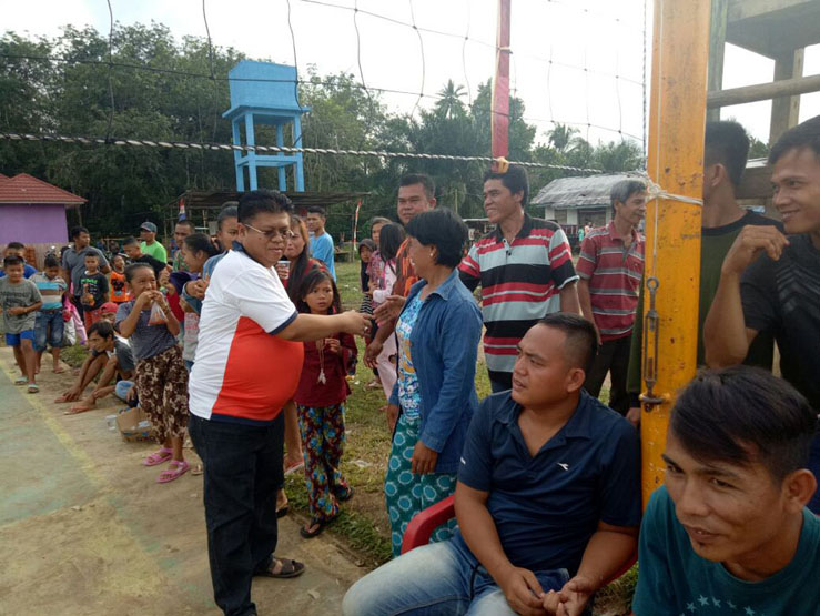 Pantuan awak media di lapangan, H Nopran Marjani yang mengenakan baju merah bergaris hitam, dan celana jeans, begitu akrab dan santai membaur ditengah-tengah masyarakat, sesekali pasangan dari Herliansyah ini melontarkan tawa.