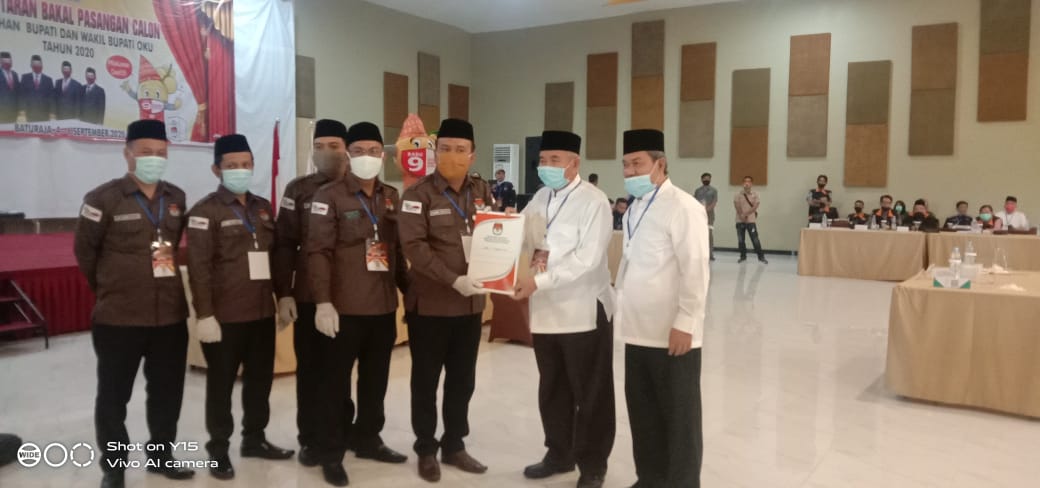 Setelah melalui pemeriksaan awal oleh tim KPU OKU, berkas pasangan yang mengantongi 12 B1 KWK parpol pemilik kursi di DPRD OKU serta 3 parpol non parlemen tersebut dinyatakan lengkap oleh KPU OKU.