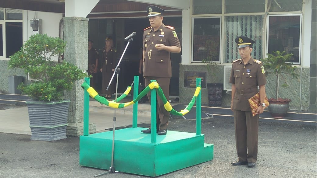 Bertindak selaku inspektur upacara dalam peringatan hari Sumpah pemuda yang ke-91, Senin (28/10/2019) yang dilaksanakan di halaman Kejari OKU tersebut Kepala Kejaksaan Negeri OKU Bayu Paramesti, SH.