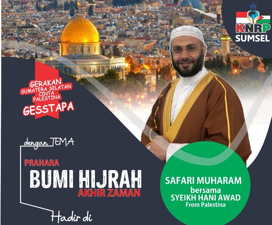 PALEMBANG, beritakite.com – Memperingati Tahun Baru Islam 1441 Hijriah, Komite Nasional untuk Rakyat Palestina (KNRP) Sumatera Selatan kembali kan menghadirkan ulama Palestina ke Bumi Sriwijaya.