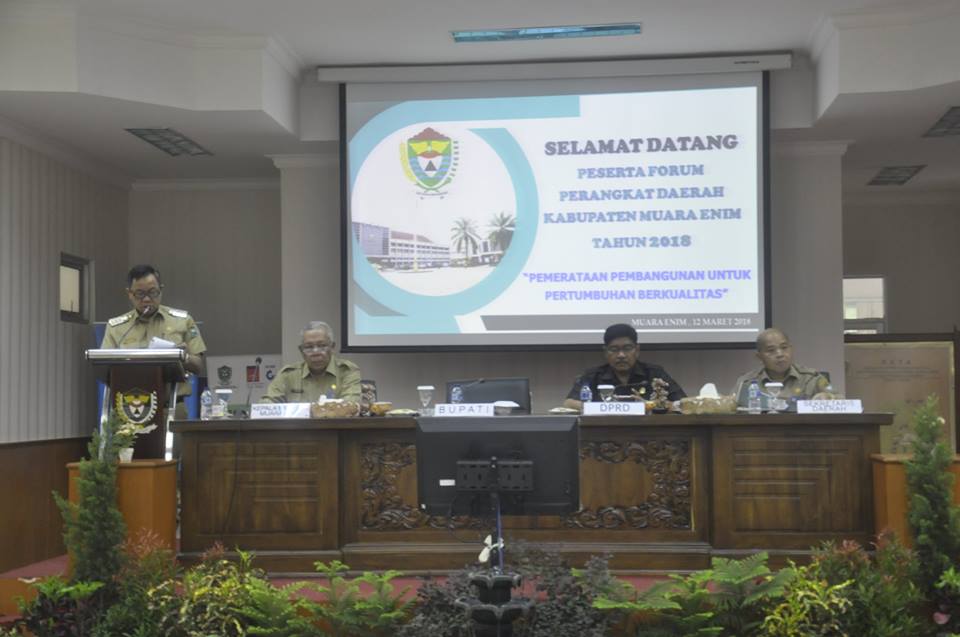 Muara Enim, Bupati Muara Enim Ir H Muzakir Sai Sohar memimpin Rapat Forum Koordinasi Perangkat Daerah Kabupaten Muara Enim tahun 2018, bertempat di Ruang Rapat Pangripta Nusantara Bappeda Kabupaten Muara Enim, Senin (12/3).