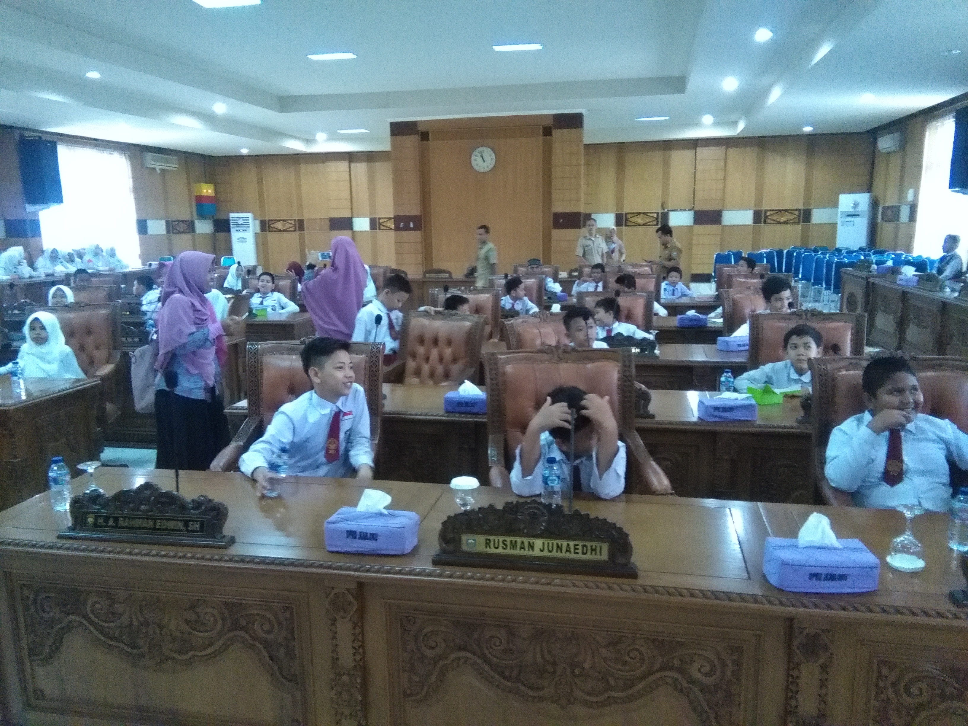 Raut bahagia nampak pada wajah para siswa yang duduk dikursi empuk yang biasanya di duduki anggota dewan tersebut, mereka nampak amat menikmati duduk di ruangan sidang anggota DPRD tersebut.