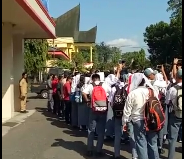 Sebelum berangkat ke Kantor Pemda, para pelajar ini melakukan demo di sekolahnya dan berteriak Copot Kepala Sekolah.