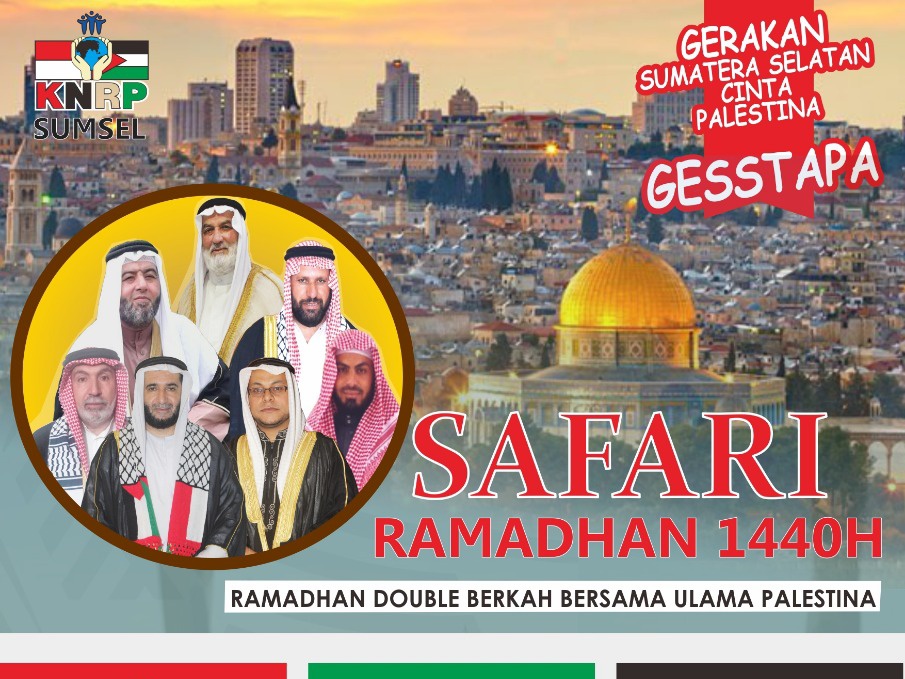 Palembang, beritakite.com – Guna meningkatkan ketaqwaan kaum muslimin di bulan suci Ramadhan 1440 Hijriah, Komite Nasional untuk Rakyat Palestina (KNRP) Sumatera Selatan menggelar Safari Ramadhan bersama Ulama Palestina selama bulan Ramadhan tahun ini.