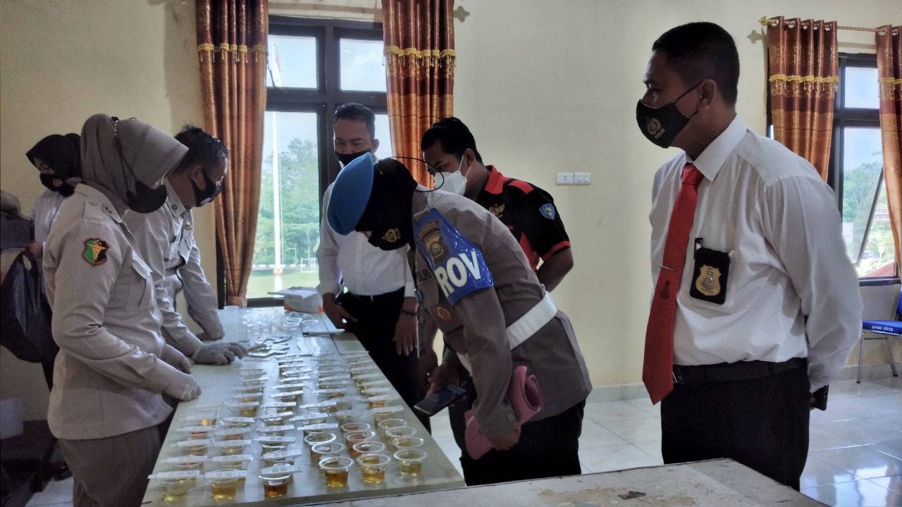 Test urine yang digelar secara dadakan usai upacara kenaikan pangkat pengabdian peresonel polres OKU ini dilaksanaan di Gedung Lantai II Sie Propam Polres OKU oleh Sie Dokkes Polres OKU bersama Tim dan Personil Sat Narkoba Polres OKU Kegiatan ini dilakukan untuk memastikan para anggota Polres OKU tidak terlibat Narkoba.