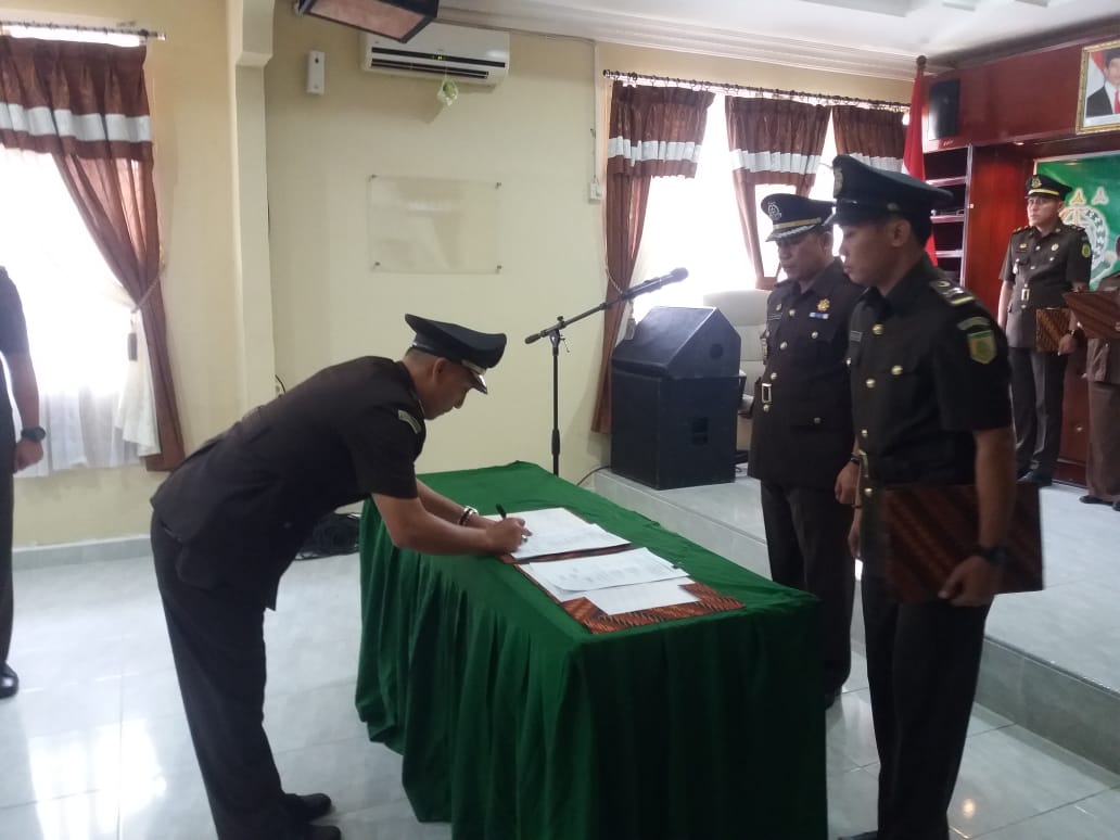 Acara sertijab sekaligus pisah sambut itu dihadiri oleh seluruh pejabat dan pegawai Kejaksaan Negeri OKU dilaksanakan di Aula Kejari OKU.