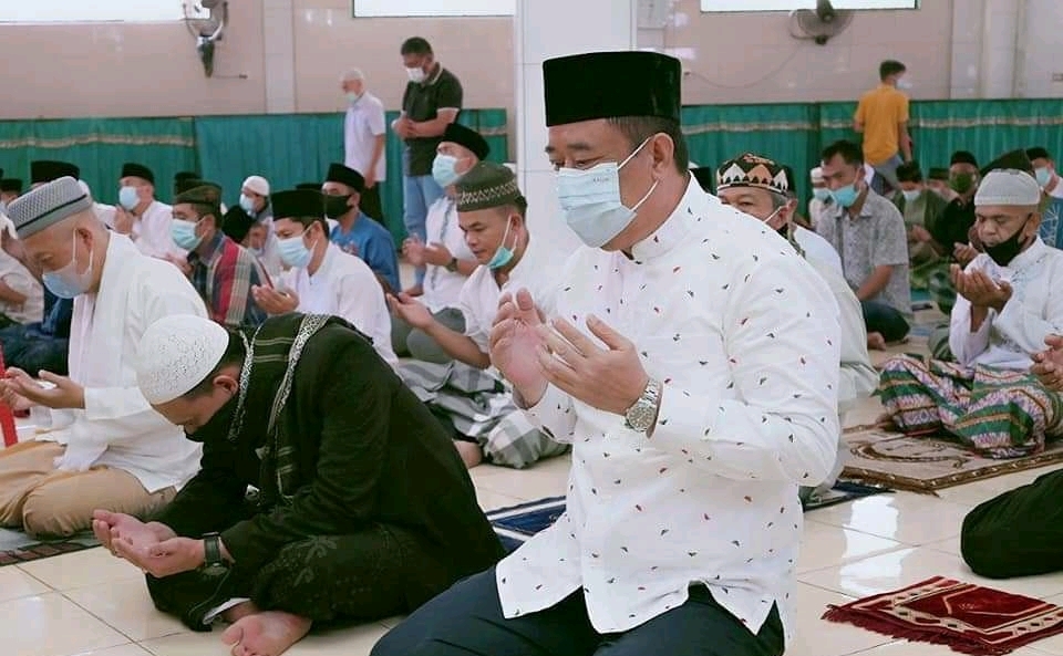 LAHAT, Beritakite.com – Bupati Lahat Ujang SH melaksanakan sholat jum’at secara berjamaah di Masjid Taqwa Kelurahan Talang Jawa Utara Kecamatan Lahat, turut mendampingi Pj Sekda Lahat H Deswan Irsyad M Pdi, Danramil Kota, Kapolsek Kota yang diwakili, OPD, Tokoh Agama,Tokoh Masyarakat, Tokoh Pemuda dan para Jamaah,Jum’at (14/5/2021 )