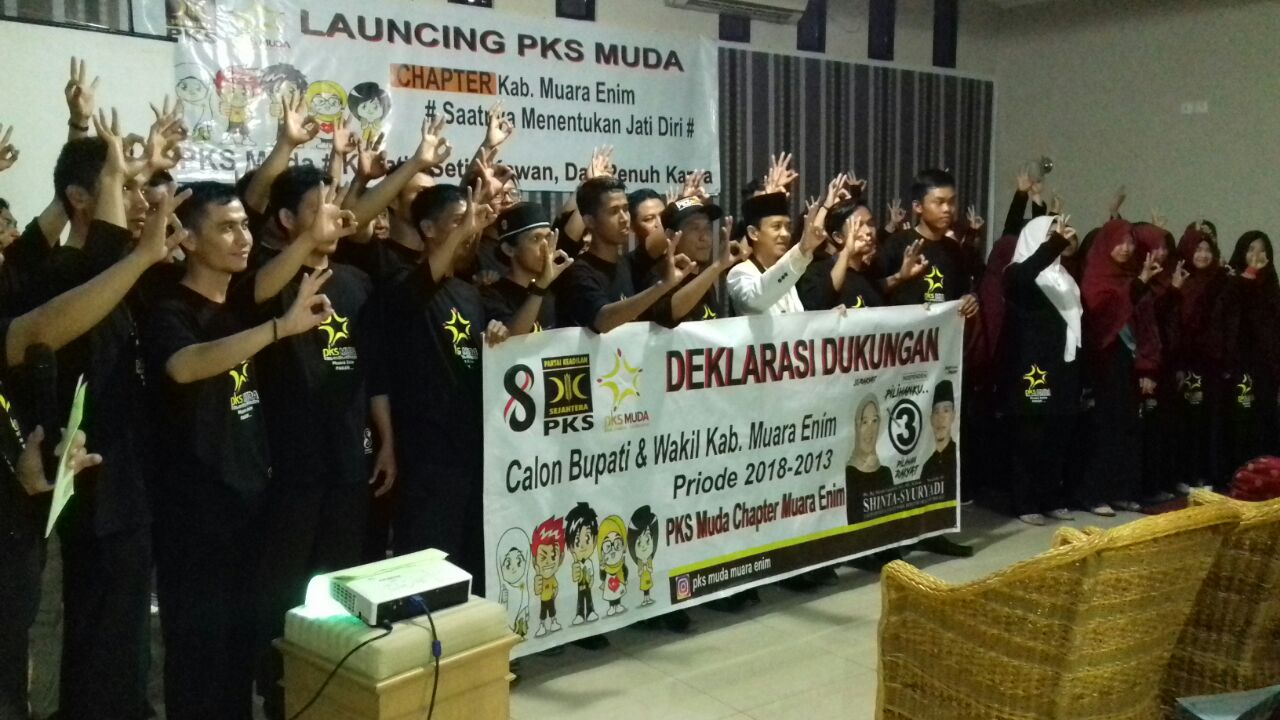 Muara Enim, Ketua umum DPD PKS Muara Enim Ustad Syuryadi Pakam melantik PKS muda di Hotel Griya Serasan sekundang Muara Enim. Kegiatan ini berlangsung 1 jam dimulai dari pukul 11.00 Minggu (1/4). Dengan dihadiri ratusan kader PKS Muda se kabupaten Muara Enim sekaligus pelantikan pengurus BPH (Badan Pengurus Harian) (PKS Muda).