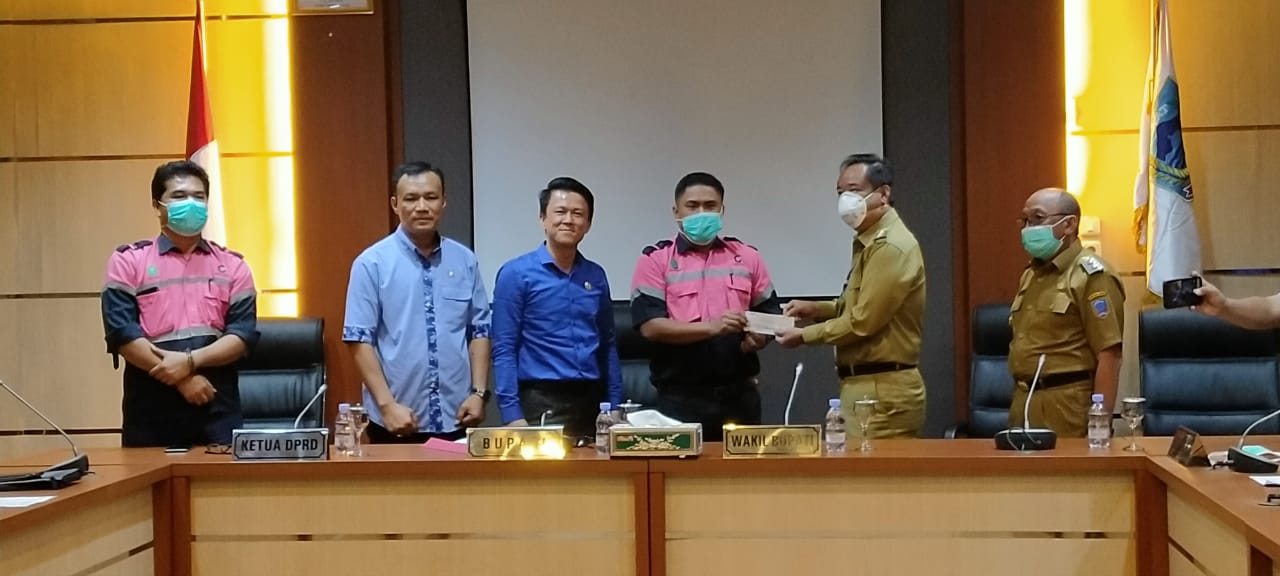 Menyerahkan bantuan tersebut langsung diterima oleh Bupati Lahat, didamping Wakil Bupati Lahat, Seketaris Daerah (Sekda), Ketua DPRD Lahat, Komisi 4 DPRD Lahat dan disaksikan langsung jajaran Pemerintah Kabupaten Lahat dan pihak Perusahaan PT Bau.
