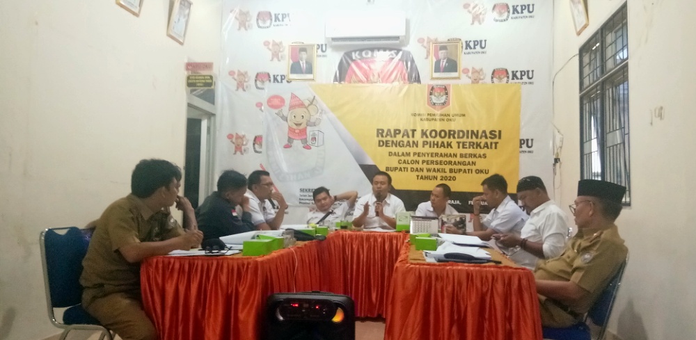 Hadir dalam rapat koordinasi tersebut Ketua KPU Naning Wijaya bersama semua komisioner KPU OKU, Komisioner Bawaslu Yeyen Andrizal, Kepala Kesbang Pol OKU Taufiq Zubir dan Kanit Sospol Polres OKU IPDA Arif Wardoyo.