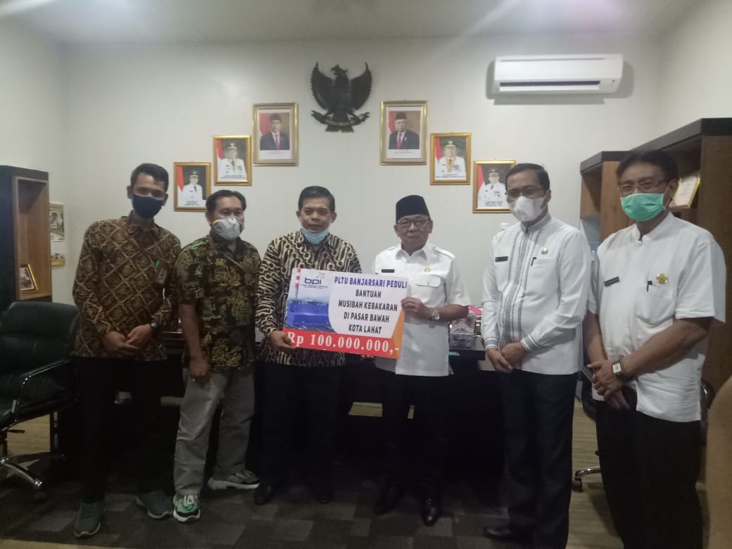 Bantuan secara simbolis diberikan oleh EVP PLTU Banjarsari, Rahmad Qodriansyah bersama jajaran diterima langsung oleh Wakil Bupati Lahat,H Haryanto SE MM MBA diruang kerjanya. Rahmad mengatakan, PLTU Banjarsari juga memiliki sejumlah program CSR unggulan, salah satunya seperti program kesehatan pemberantasan stunting, bantuan kesehatan gratis bagi warga tidak mampu yang sdh berjalan 4 tahun, hingga bantuan duka cita bagi warga yang meninggal dunia. kali ini, PLTU Banjarsari turut memberikan bantuan kepada saudara saudara yang tertimpa musibah kebakaran di Kelurahan Pasar Bawah.