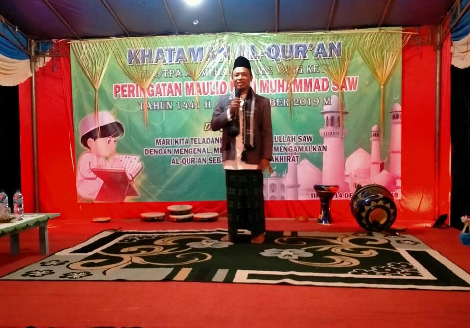 Bangka Selatan, beritakite.com – Taman Pendidikan Al Qur’an (TPA) Al-Muhajirin Desa Tiram Kecamatan Tukak Sadai Kabupaten Bangka Selatan menggelar Khataman Al Qur’an dan peringatan Maulid Nabi 1441 H, Sabtu (14/12/2019) malam ba’ada isya di lapangan TPA Al Muhajirin. Kegiatan yang rutin digelar setiap 1 tahun sekali ini menghadirkan penceramah Ustadz Imam Muchani,S.H.I, M.H, Kepala KUA Kecamatan Sungai Menang Kabupaten Ogan Komering Ilir Sumatera Selatan.